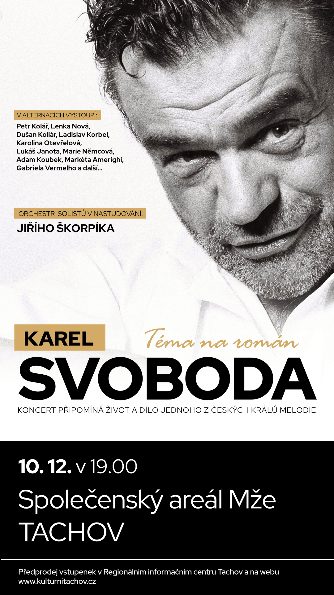 Koncert, který připomíná život a dílo jednoho z českých králů melodie, Karla Svobody. Večerem zazní populární, muzikálové i filmové melodie mistra v neotřelých aranžmá, instrumentálních i a capella úpravách. O citlivé pojetí mistrova díla se postaral jeho dlouholetý kolega, žák a dvorní aranžér Jiří Škorpík (4TET) a orchestr sólistů v jeho originálním nastudování. V alternacích vystoupí: Petr Kolář, Olga Lounová, Lenka Nová, Dušan Kollár (4TET), Ladislav Korbel, Karolina Otevřelová, Lukáš Janota, Vendula Příhodová, Peter Strenáčik, Markéta Amerighi, Gabriela Vermelho a další…