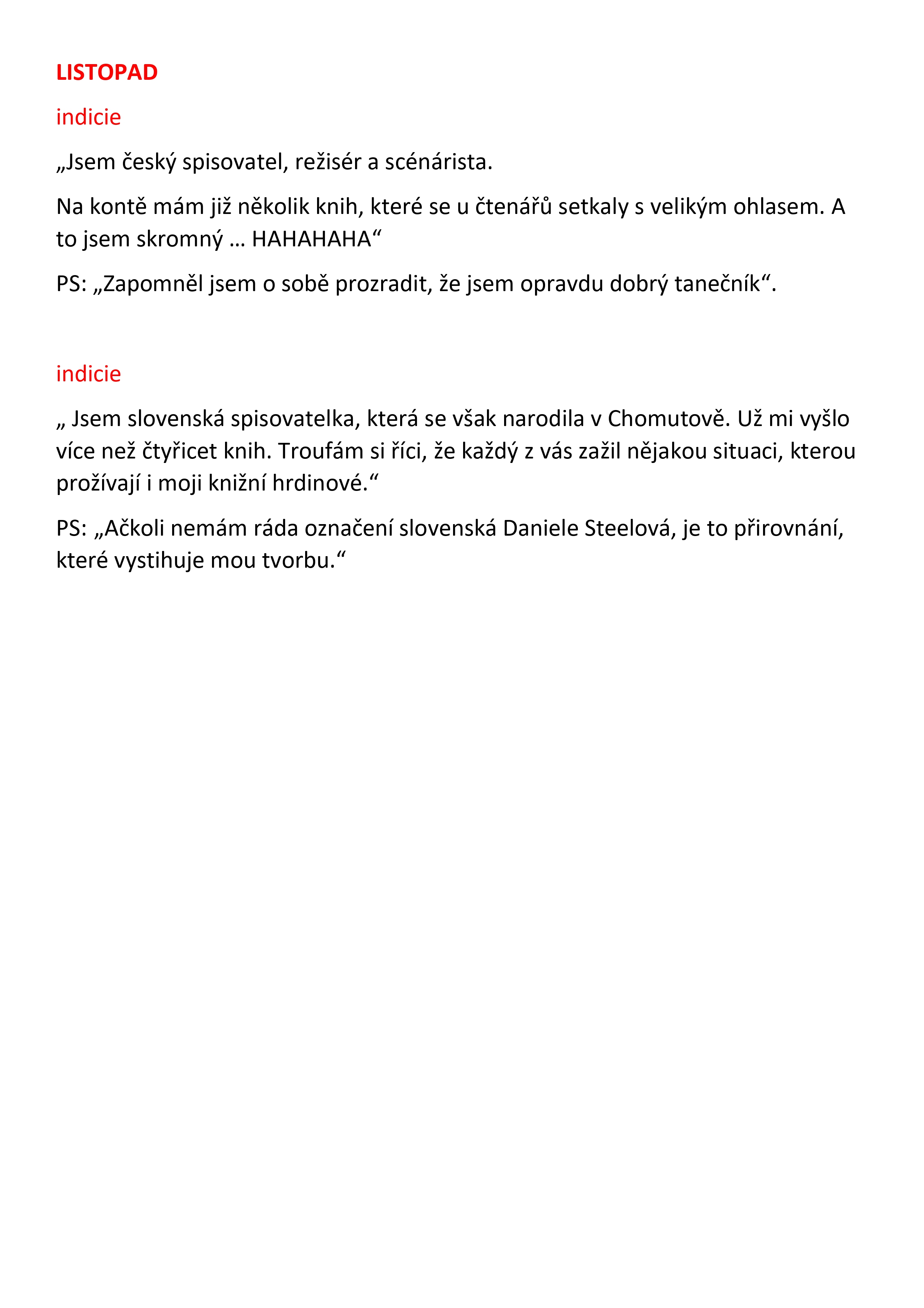 Každý měsíc dostanou soutěžící indicie, ze kterých budou muset zjistit jméno spisovatele a následně si přečíst jeho knihu.